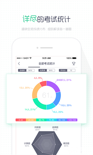 3、作业正确率,考试得分率,走势曲线让老师更准确掌舵教学方向。