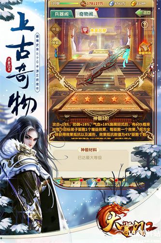4、割鹿刀、太阿剑、圆月弯刀等知名神兵利器,更可助掌门称霸武林,独步江湖!