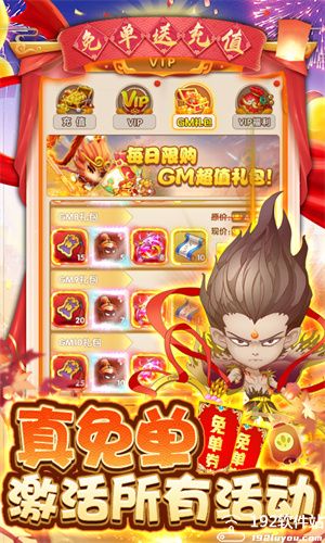 西游大圣再临gm版上线就送满级VIP特权,更有着海量元宝银两免费领取,超多道具装备领不停。并且更有着万元真冲卡可以使用,能够激活真实充值活动,领取各种充值奖励道具,零氪金也可以轻松当大佬,另外每天登录游戏都有着极品道具角色赠送,尽情畅享最精彩绝伦的热血西游冒险。此外,还能够亲身体验诸多经典的剧情桥段,挑战各种副本BOSS,经历九九八十一难取得真经。喜欢的玩家快来下载吧,以免被屏蔽。