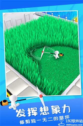 4、真实的割草声音,通过滑动屏幕将草坪组织成不同的形状来完成割草。