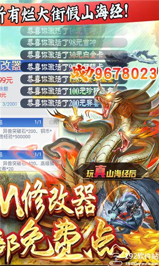 3.推图爆神兽!!!无限制刷充,人人满V。