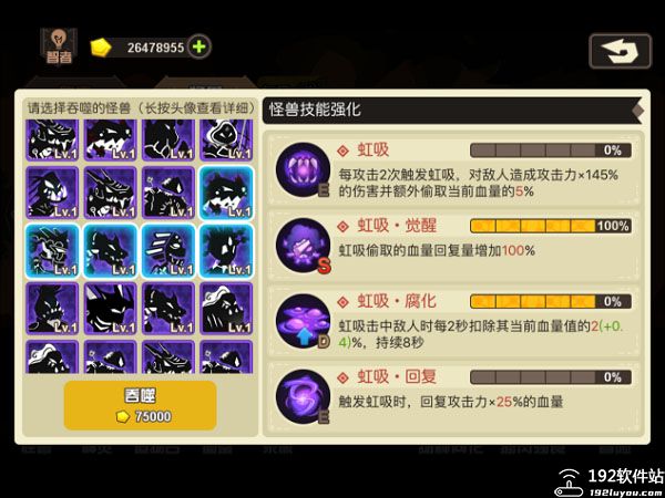4、技能的升级是有选择性的,大家要根据怪物本身的特性,选择性价比最高的一个或者几个技能升级。