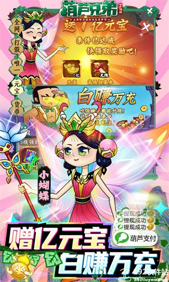 4.充值比例1:1000,首充最高8倍返还,登陆送橙色七子,合体神将-小金刚(7天)和最强伴侣小蝴蝶(14天),还有大量招募券、神充卡、橙将葫芦娃等你来领
