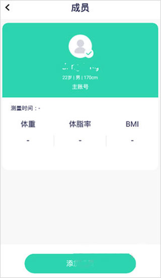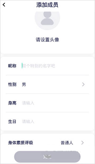 2、点击【添加成员】,输入家人信息,包括昵称、性别、身高、生日、身体素质评级。