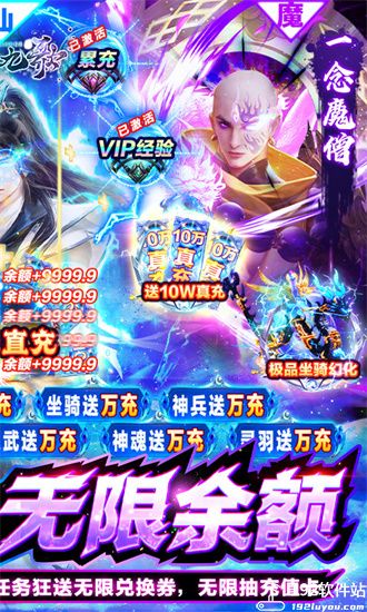 3.在线、任务、冲级等活动共送10万真充,免费直充功能、真充卡还能激活累充活动、首冲、VIP经验、GM商城等
