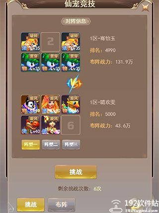 值得一提的是,作为进攻方我们是可以看到你选择的对手的仙宠、排位和技能的。这就是一个机会,让你通过制造出克制对手的布局去战胜对手!这可是战力与策略的最高挑战!用我们最爱的仙宠,去迎接最强大的对手,若胜利了那份满足感可是无可比拟的!这就是让人又爱又恨的仙宠竞技场!不过注意每天只能挑战6次仙宠竞技噢,若想继续需要通过购买次数实现。