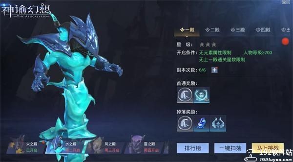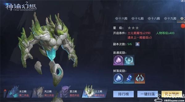 4、关卡分为首通奖励和掉落奖励,越后的殿层需要的进入的条件和门槛越高,但是掉落的奖励也是越来越丰厚
