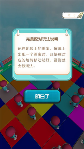 3、我们需要在规定时间中站在指定颜色方块中,否则就会掉落悬崖导致游戏失败哦