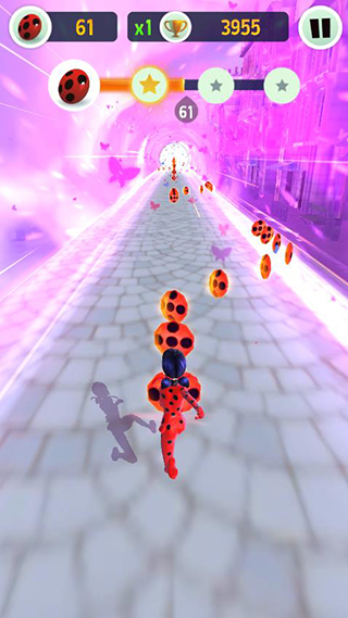 瓢虫少女跑酷游戏最大的优点之一是增强了通行卡方式。游戏遍布了很多层级,每一个层级都是不同的地形图情景;除此之外,还有着诸多有趣的道具可以带给你更多的乐趣体验。
