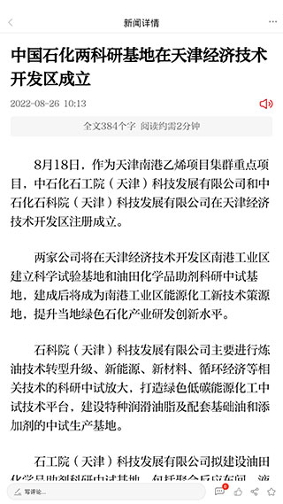 2、点击其中任意资讯便可详细阅读,下方还提供了评论、点赞等功能。
