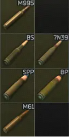 545口径:推荐的有bs和7n39,bs可以基本保证6级甲一下的胸口两发致死,而7n39则是对所有护甲都是三发致死,所以在实验室工厂使用7n39,其他地图使用bs不失为一个好的措施