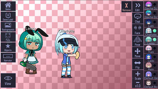 休闲娱乐等游戏玩法。游戏玩家打造自己的动画风格角色,从许许多多的服饰、衬衣、头型、武器装备等中选择适合自己的服装时尚!设计方案角色进入后Studio并建立一切你不难想象的画面,加上宠物、物件和判断你最喜欢的环境!除此之外,也可以从剧情模式、立式方式等四种不同类型的模式下挑选!喜欢这款