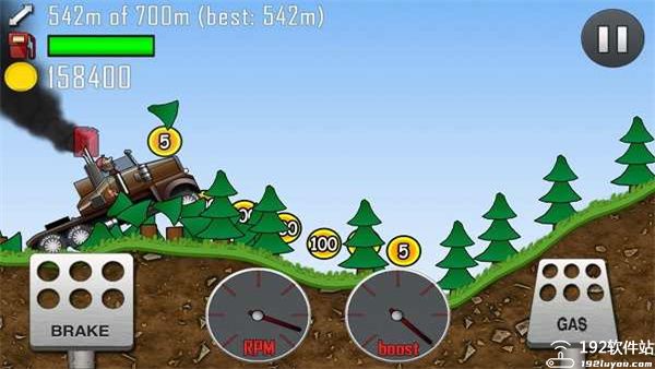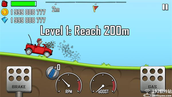 虽然游戏的模式看起来很简单,但却隐藏极大的乐趣。要求玩家通过油门和刹车两个按钮控制好汽车前进的平衡和速度,随着前进的距离越长,游戏的难度也会增大,玩家在游戏中获得的金币来购买新汽车、新关卡、升级汽车部件。