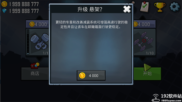 经过一段时间的游戏后,你的金币慢慢的可以满足你去升级自己的汽车时。首先升级你的轮胎或提高发动机其次是前悬架和四轮驱动,升级发动机到3级左右,然后慢慢的把其他几项也都提升到3级左右。这将更好的提升自己车辆的整体实力,不至于因为车辆的速度太快而经常翻车。