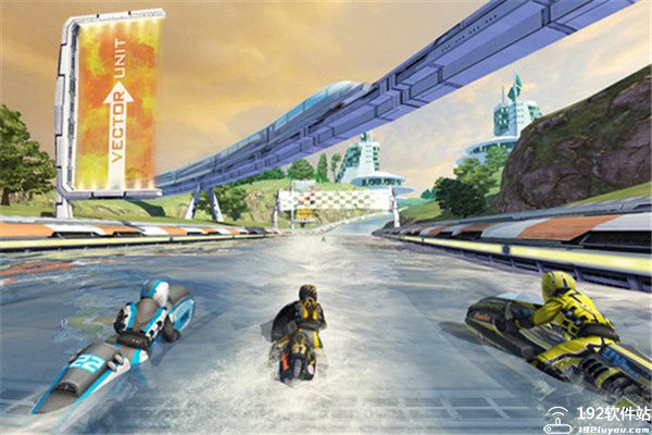 赛道的设置不是简单一味左右摇摆,而是设置了一些高台增加游戏的可玩性。所以,除去赛艇竞速本身,玩家在驾驶赛艇的同时还会时不时的腾空少许。