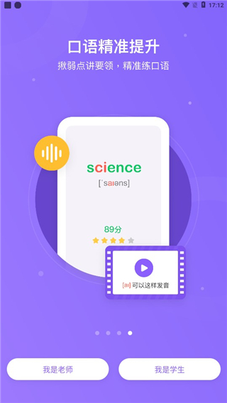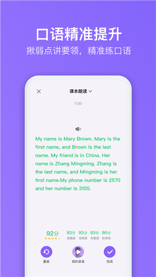 4、口语跟读智能实时口语评分,逐句跟读逐词打分,助你攻克“开口”难关。