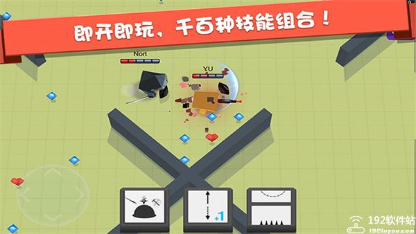 在玩法方面,以玩家之间的真实对抗为主,在游戏过程中每消灭一个敌人都会得到相应的积分和金币奖励。并且在战斗场景中还会有不断出现钻石和红心,红心可以用来补充血量,而钻石则可以增加经验值,提升等级的同时还能随机选择三个技能之一,这个时候就考验玩家的反应了,在短时间内,选择对当前局势来说最优的技能至关重要。