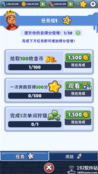 游戏中吃到的神秘盒子,可以获得金币和完成任务所需的字母。每过一关你的前进历程和分数倍数会增加一点。从x1开始,最高可以达到x30。