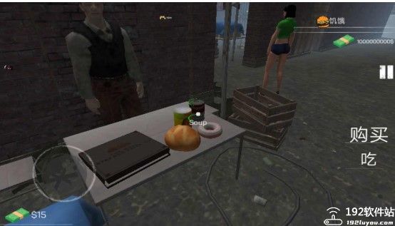 2、在卧室睡醒之后,你会发现右上角有个饥饿条,先去厨房冰箱里吃点东西(厨房在卧室对面),Shift可以快速行走,吃完东西后离开宾馆。