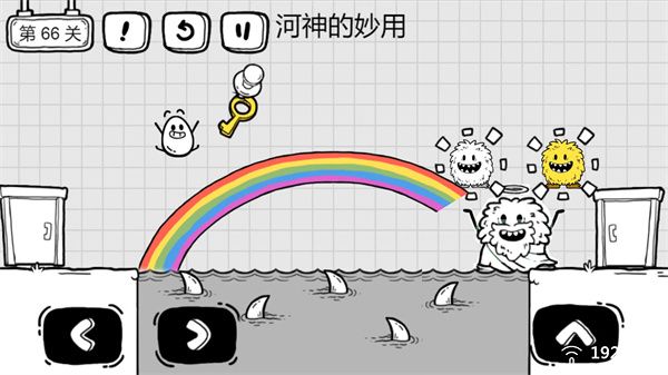 按住河神移动到右侧,然后河上就会出现一条彩虹桥,玩家可以利用彩虹桥通关