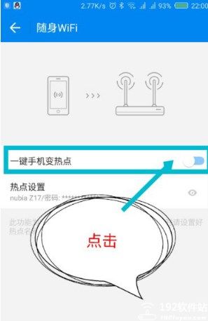 3、打开随身WiFi功能后,点击下面的热点设置,可以设置热点的属性。