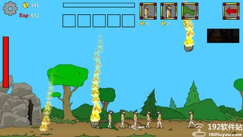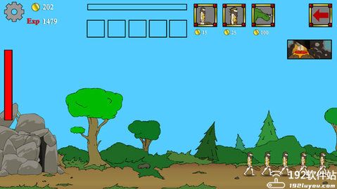 刚进入游戏的时候,玩家还是原始人,当通关打到对方城堡的时候,玩家已经进化成未来战士。