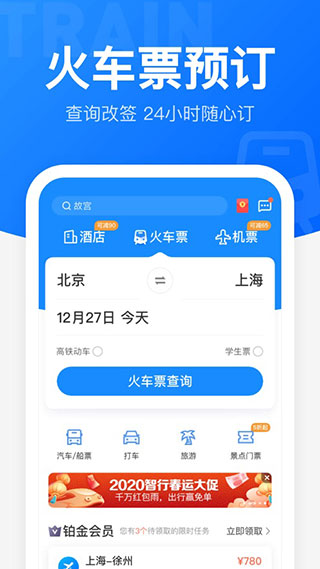 智行火车票app是一款全新发布的火车出行软件,它可以帮助用户在手机上即可轻松完成购票,不再需要到火车站之后排队购票,可以享受更加便捷的服务,而且在购票时只需要输入你的身份证和电话号码即可,进站时直接刷身份证即可,有需要的话就快来使用吧。