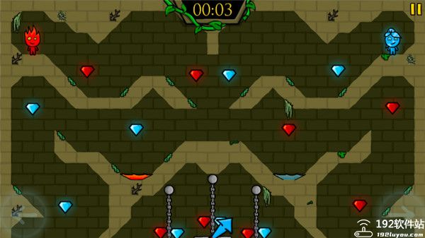 1、游戏中冰人与火人冒险,让游戏过程更加的刺激。