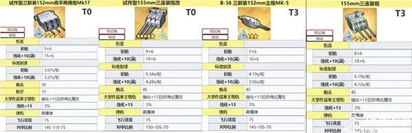 三连155,三期开箱子非常容易获得的炮,由于散布问题作为轻巡主炮一般,可作为战列副炮。
