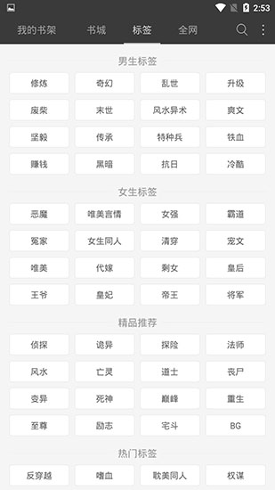 7、点击标签可以看到有非常多的小说分类,选择自己喜欢的类型就可以开始看啦,有兴趣的小伙伴们快来下载体验一下试试看哦!