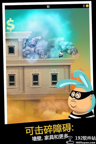 闯关手游,玩家将在一层一层的房间盗窃,每一个房间都有不同的道具和武器;当然,房间里面的人物、陷阱也是不一样的,尤其是警察。在游戏中还有各种陷阱和圈套,比如激光枪,被射中会缩小身体并减少攻击力,而浴缸可以补回你消耗得能量,总之每一个道具和陷阱都是有额外的作用效果!