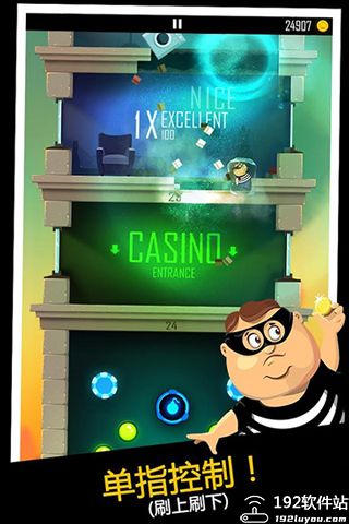 这是一款卡通样式的休闲益智的游戏,游戏讲的是爸爸看完一本书之后开始盗窃故事。在游戏中,用户必须操纵爸爸在各种各样可怕的地面上弹跳,游戏全过程充满了惊险刺激,爸爸不但要撇开警员,还需要绕开各种各样圈套,一路上拾起各种各样金币和游戏道具。但是,很多游戏道具需要一定的极端标准才可以开启,并且游戏操作比较简单,全过程就两个动作让爸爸跳起来,你要做的是防止各种各样巡航导弹和警员,同时尝试到达最底端,但这种操作看似很容易获得高分数,但是实际操作并不是这么简单,你需要把握机会跳起来,降落时躲避巡航导弹的攻击,但是它们时常出现在了你的两侧,为此还是还很考验玩家的操作,期间你还需要尽量获得更多的金币,而警备员几乎到处都有,这点很头疼,但凡会出现意外就会导致游戏失败。
