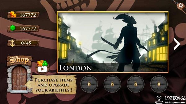冒险手游,游戏中玩家作为一个海盗,需要去拿回属于自己的东西,为此你可以去到处冒险,期间可以在别的海盗船中来回穿梭,整个过程中玩家可以潜行,也可以光明正大的将敌人全部干掉!在游戏中玩家还可以去解锁新的武器装备,但是只能干掉boss才能进入下一个关卡,其他小兵只能增加经验!