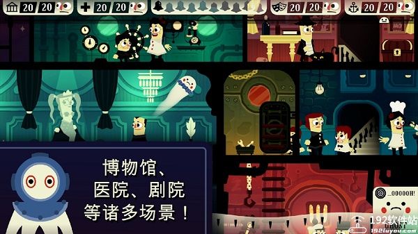 鬼魂,在建筑中穿梭,成功地吓唬人群可以解锁更多的场景。游戏设置了许多游戏玩法,通过将自己附加到各种物现你的目标。Q版本的