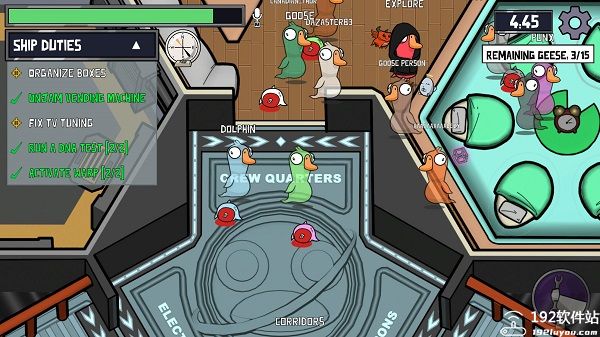 由于大多数陌生人会对您的蜂群构成威胁,因此应格外小心,以防止他们渗入。例如,僵尸鸭会携带危险的病原体给所有其他鹅,使它们成为不死生物。不过,由于Goose Goose Duck中有很多不同的角色,玩家需要辨别每一个物体,尽快找到邪恶的鸭子。玩家应与其他鹅协调及时完成任务才能成功完成此任务。