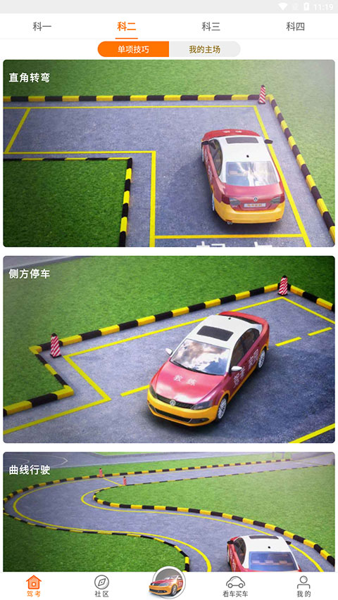 1、进入【模拟练车】功能之后,我们就能看到多种车型和科目可以选择。