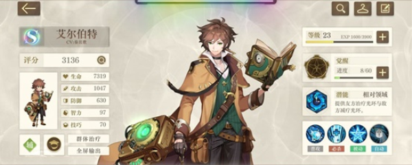 TOP2 艾尔伯特四个技能出来后就可以上场了,因为四技能自动技的效果,不仅奶量惊人,甚至可能输出碾压攻击角色