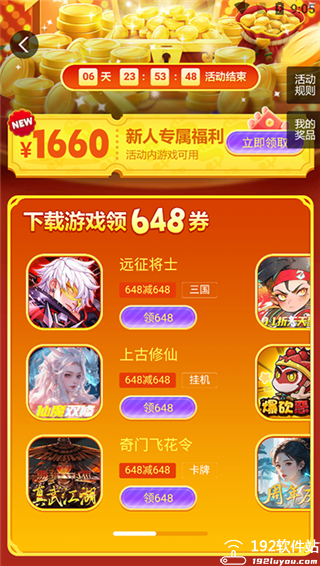 4、下载一些新游可以体验一下,领648卷,助力前期快速发展。