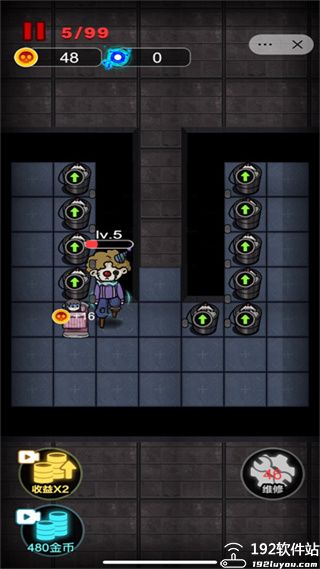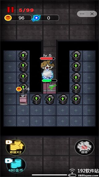 游戏中唯一的输出手段,每升一级输出会翻一倍,在于多而不在于精!炮台一定要造很多,而不要照着一个炮台一直升级,同时要注意炮台的攻击距离,避免造太远打不到鬼的情况。