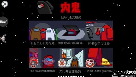船员阵营:完成所有的飞船建设任务,或者通过投票将所有冒充者扔出airlock。(被投票出去的人会有被丢出飞船的动画)