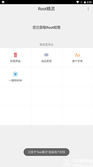 说回咱们这款app,它所拥有的功能应该是目前市面上root权限开通软件中比较齐全的,大家可以使用它完成手机内应用app的卸载预装、开启管理、字体改变、ROM的自动刷新,所以说它的功能还是比较完善丰富的,按理说是可以满足大家全方位使用需求的,此外,root精灵手机版可以帮助用户在各个网站上下载你所需要的app软件,并且不会被手机系统内的杀毒程序所拦截,不过在此之中大家可得注意了,有毒的包咱们还是尽量不要去冒险下载哟,毕竟此时你就是手机的掌管者,你手机的生死就全靠你把握了,你的手机系统此时已经形同虚设、任你摆布,所以root手机其实也是一把双刃剑,就看大家怎么用啦!对它有需要的小伙伴就快来咱们这下载吧!