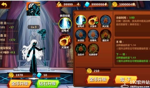 2、技能卡牌同样重要哦,战斗过程中这些强大的技能可以帮你轻松击败对手哦,比火柴人英雄更加的直接霸气。