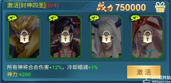 属性:所有神将合击伤害+12%,神力+100