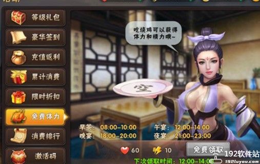 3、游戏内体力可通过“免费体力”活动来获得额外的体力值,这可不少呦