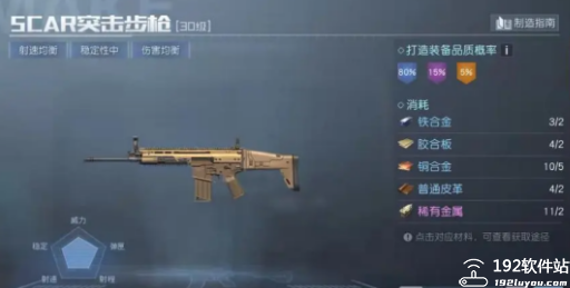 其基础的五维面板,我们可以看到其特点也是射速均衡、稳定性中且伤害不高不低,没有什么突出的特色,自然也就没有一些棘手的缺点,非常推荐各位新手玩家作为前期过渡和中期的主力武器使用。哪怕是到了游戏中后期,这个也可以放在第二把枪那里,作为备用枪械。