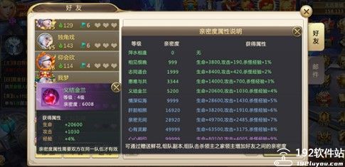 当队友中,亲密度达到一定数值,不仅有三围加成,也有经验加成。最高可以增加13%的经验,所以更鼓励固定队伍或者情侣一起刷副本,做任务。