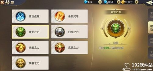 被动技能:青龙之力,可以增加人物30%的经验获得。
