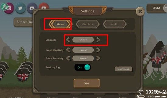 2、在game这栏里,选择language,找到Chinese后,点击save;