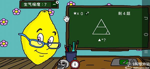 教学辅助功能,还有保留原版的恐怖元素,带给玩家全新的游戏体验。各位玩家进入游戏后,就会看到一个柠檬,担任着老师,会在黑帮上出数学题,一个数学题会推出几个答案,前面的可能会简单点,基本是加减法和乘除法。答对了可以加星星,打错就减星星,没有星星扣除就会增加生气值,这生气值达到十点,就会开启恐怖玩法。此外,提供的题目当然不局限于算数题,还有应用题和作图题,玩家可从画面上看到,既可以体验游戏,也可以学习哦,玩法非常新颖。