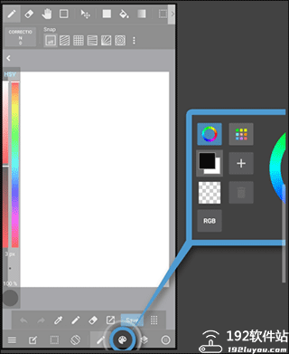 在上色的时候点击有着五颜六色的颜色可以选择使用